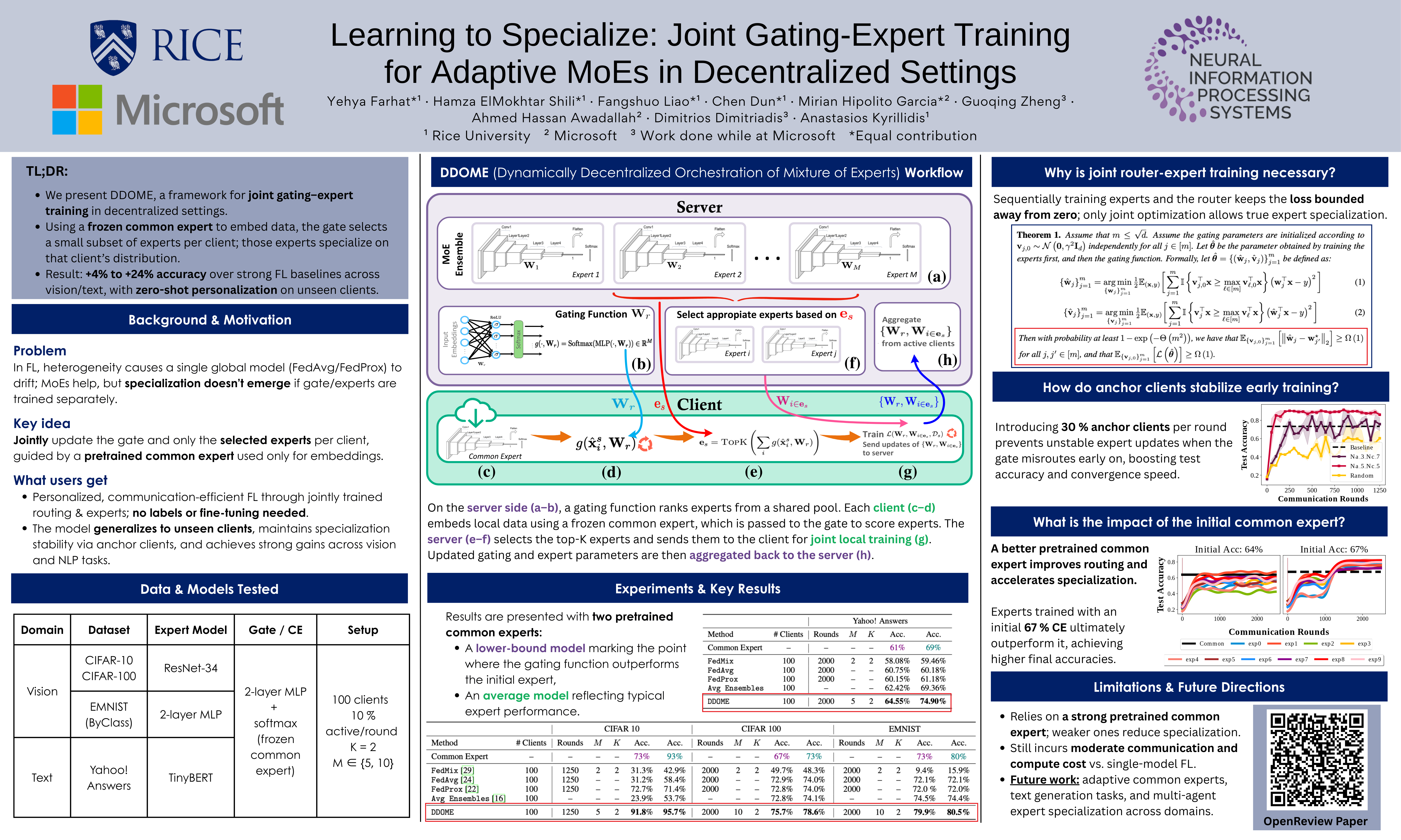 - Sep 2025 - Our paper Learning to Specialize: Joint Gating-Expert Training for Adaptive MoEs in Decentralized Settings was accepted to NeurIPS 2025 🎉.